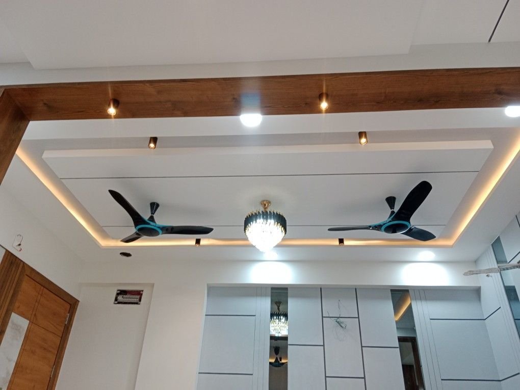Your hall’s appearance and attitude can be totally changed by a spacious ceiling, particularly if it has a chandelier and two fans. Modern false ceiling designs give your area depth, character, and elegance instead of staying with boring, antiquated ceilings.