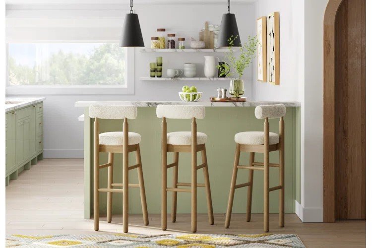 Black pendant lighting placing above the white countertop add a modern look to the light blue kitchen island, similarly enhancing the fashionable layout itself. The island itself becomes the main focus of the distance, further more advantageous through its sleek cabinets and stainless-steel dishwasher. The setup makes use of a light blue island leg with warm wood bar stools, which further balances the shade and texture itself. Kitchen cease panels sincerely decorate the island’s appearance when you pick matching finishes or contrasting colours for a polished look. Moreover, those creative panel ideas assist tie the complete kitchen design collectively seamlessly.