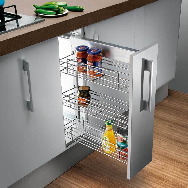 Maximize the efficiency of your kitchen with smart kitchen shelves and racks ideas tailored to small spaces. Custom pull -out shelves or drawers are perfect for transforming difficult cabinet corners into available storage zones. These smart additions allow you to easily reach items behind, and reduce clutter and frustration. Use this space -saving idea to store heavy pots and pans near the stove, making cooking more convenient. Whether you are dealing with a compact design or just want to have better organization, adding pull -out features is a practical way to improve the kitchen’s functionality and style. Keep necessities within reach without sacrificing space.