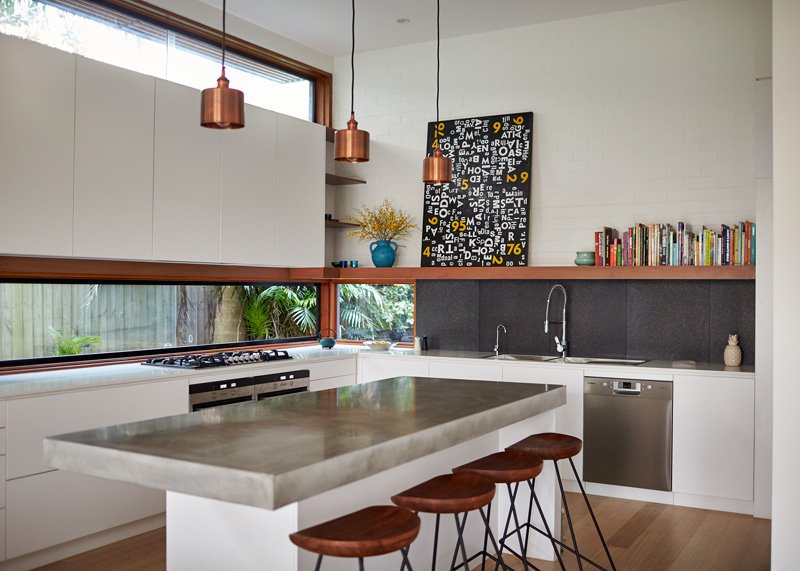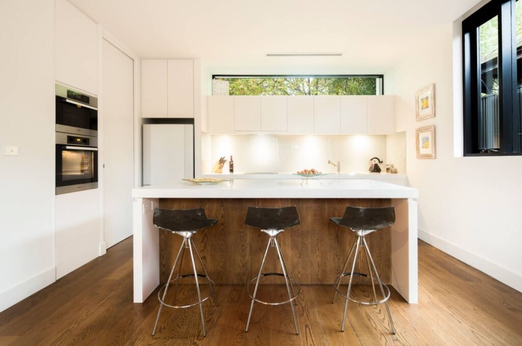 Whether your kitchen is compact or spacious, it is necessary for the appropriate airflow and brightness to include windows. A practical option is to install a window unit containing two window panels, which can lead to better control of ventilation and natural light. For long or extended kitchens, consider placing these windows along the length of the wall to create a spontaneous and functional design. Such kitchen window design ideas not only increase ventilation, but also improve the visual appeal of space. This setup helps maintain a fresh, airy atmosphere by adding a stylish architectural element to your kitchen layout.