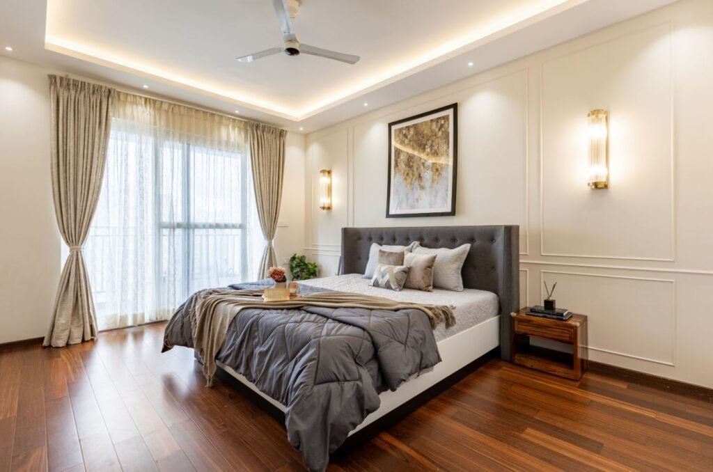 The floral designs are delicate and impart a delicate and graceful appeal to the bedrooms and effortlessly transform the general atmosphere. These minor designs add some level of serenity and elegance to the space, thus making it quite welcoming and relaxing. Combined with modern and classy elements of the decor, the floral designs provide an ideal blend of beauty that is durable but is placed in a modern manner. They are applied either on the wallpapers, upholstery, or bedding, and provide visual appeal without cluttering the space. This is a perfect unity of the design techniques that make the bedroom look like a glamorous retreat that is comfortable, stylish, and with a low-key luxury.