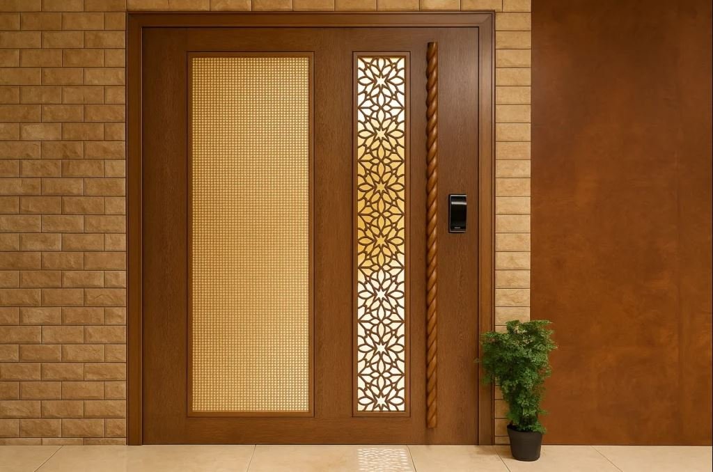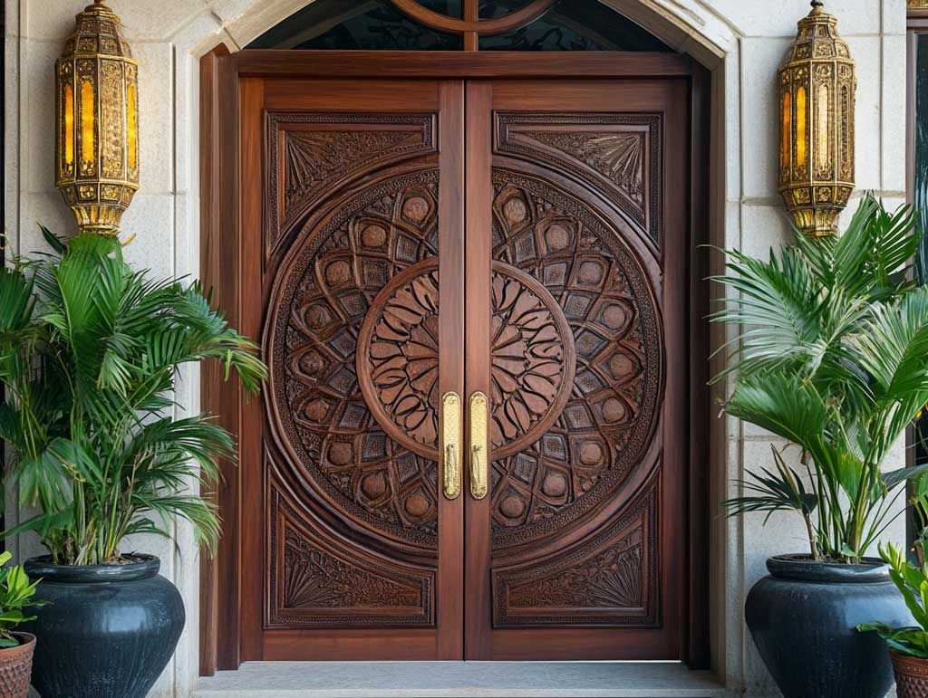 The main entrance serves as more than simply a point of entry; it is the major feature that defines the mood of your house. It subtly conveys your sense of style, individuality, and the general theme of your interiors and is the first thing guests notice. The main door’s location, composition, and style should all be carefully considered while designing your house. The outer exterior and the interior can both be perfectly improved with the correct main door selection.