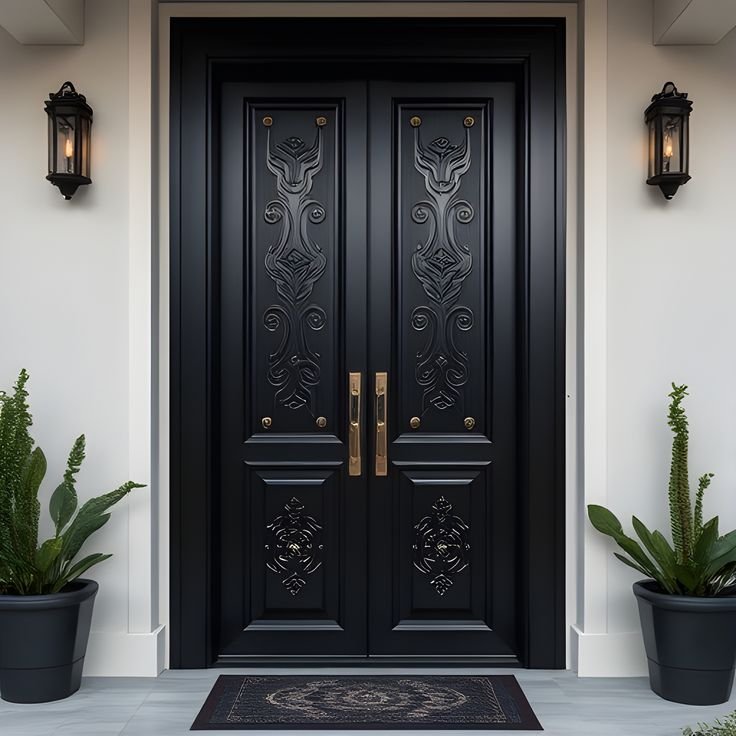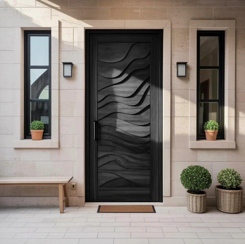 In case you have a more modern and edgy taste, then it is right time to think about black as a entrance modern door design in India. They can be effortlessly integrated with any background while also giving off a stylish and unique look.