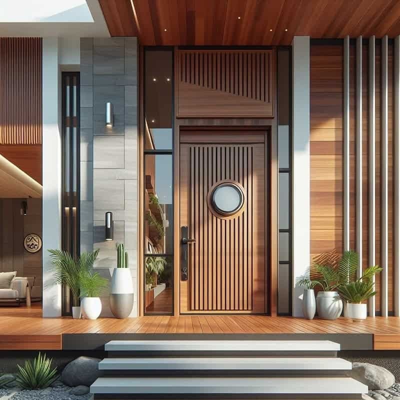 Modern timbers like teak and oak, which provide the required strength, warmth, and enduring attractiveness and beauty, are used to make the main doors. Blend them with smooth handles or elegant metal decorations to get a sleek modern look.