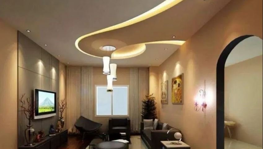 It is ideal to be used in living rooms and the main hall fall ceiling design is a circle with beautiful chandeliers to combine luxury with sophistication. The graceful curves attract the eye upwards, and this gives it a focal point that improves the atmosphere when eating. Perfect to bring the sense of luxury and cosiness to both modern and traditional interior.