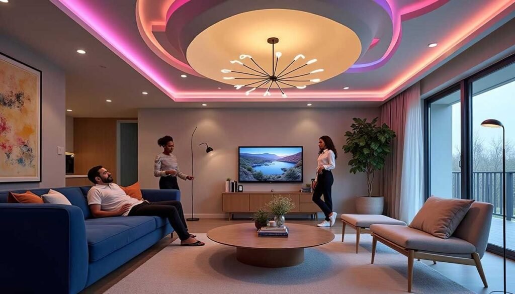 Do you want your hall to be fun and different? A modern main hall fall ceiling design with light shape motifs can make wonders. In this specific design, there are geometric forms or waves or even abstract forms that are not only attractive but also provoke curiosity as well. It is not only about appearances, but the manner in which the lights are positioned. It has the ability to alter the mood. Want a calm, cozy evening? The hall is lively and welcoming because of bright and dynamic colourful shapes.