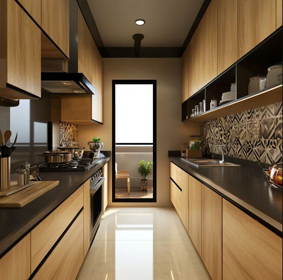 3. Wood-Finish Kitchen Interiors