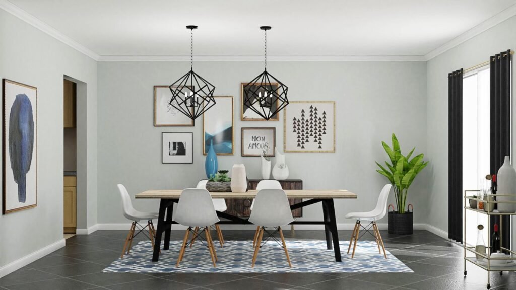 Now let’s see how to match wall art with a variety of dining room interiors: