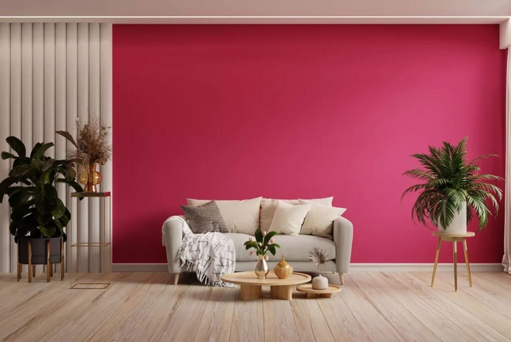 2. Peach Colour Wall Painting Idea for Living Room