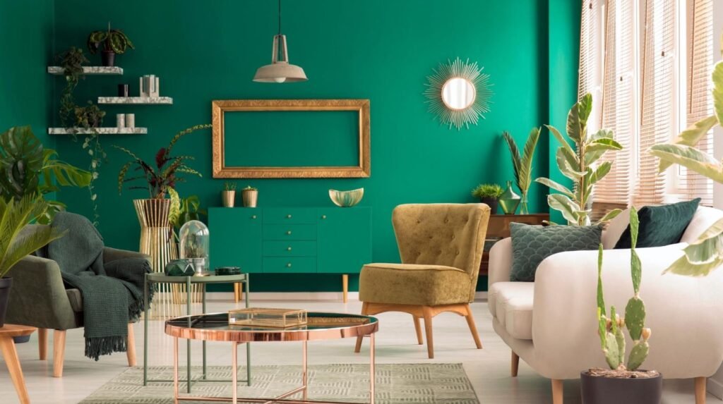 Green is a colour that symbolises balance, peace, and the beauty of nature. Green is a colour that can completely renew and relax your home environment. From pastel green tones like sage and mint to more saturated green tones like emerald and olive, each shade of green has its charm. These enhance visual interest and bring calm. Green wall paints, furnishings, and accessories effortlessly bring the outside in and promote a peaceful environment in the house.