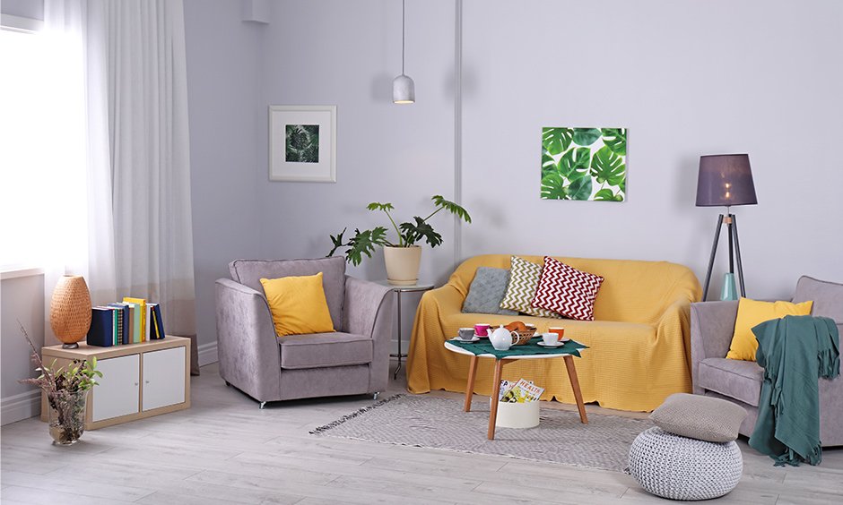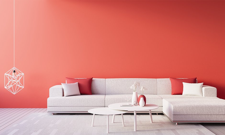 Magenta is a combination of red and blue, teeming with allure, the colour of joy, pleasure and calmness. And if you use it on the walls, you will end up with a glamorous space, indeed! The image above depicts an excellent combination of a grey theme and a magenta paint colour for living room in a panel wall.